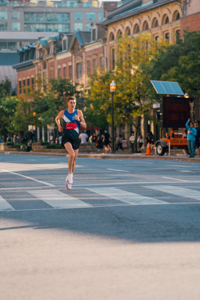Undeterred and under the tutelage of his coach Richard Lee he continued to train and enjoy his newly found distance. In the fall of 2024, he won the Canadian nationals at the Toronto Waterfront Marathon in a time of 2:12:17. Then riding on a momentum he decided to try for a 2:10 and chose a flat course, the McKirdy Marathon in Rockland Lake State Park, Congers, New York. It ended up being more of a race than he thought: “We had a pacer through to 30 kilometres then the last 12 kilometres it became a race which was awesome. I even did a sprint finish which looking back was crazy. The pace came pretty easy and everything just clicked.”