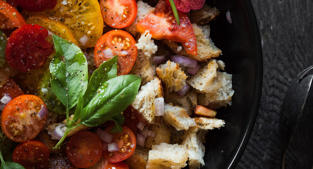 Panzanella is an Italian bread salad traditionally made up of leftovers. This simple vegan panzanella salad is made with a base of toasted sourdough or ciabatta bread, fresh diced tomatoes, and a red wine and olive oil vinaigrette. Topped with fresh basil, this Panzanella is a perfect way to enjoy the fresh flavours of summer any time of the year.